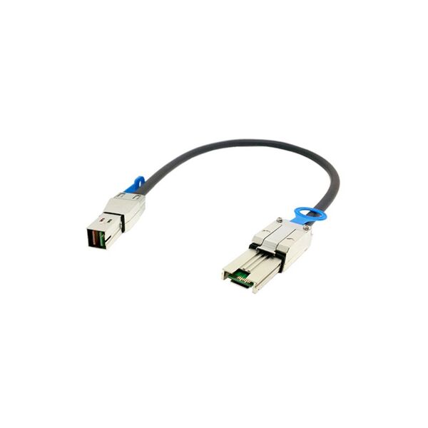 Les interfaces SAS (Serial Attached SCSI) et SAS HD (Serial Attached SCSI Haute Densité) sont des technologies conçues principalement pour le transfert de données vers et à partir de dispositifs de stockage sur disques ou bandes magnétiques. L’interface mSAS (Mini Serial Attached SCSI) et SAS HD (Serial Attached SCSI Haute Densité), offrent une taille de connecteurs réduite et des débits d’interconnexions accrus. Les câbles miniSAS – miniSAS HD d’IBM ont été développé en utilisant du câble cuivre twin axial dont les propriétés fournissent des améliorations significatives de vitesses de transferts à 12 Gb/s et d’intégrité des signaux. Les câbles miniSAS sont disponibles pour des applications SAS internes et SAS externes.
