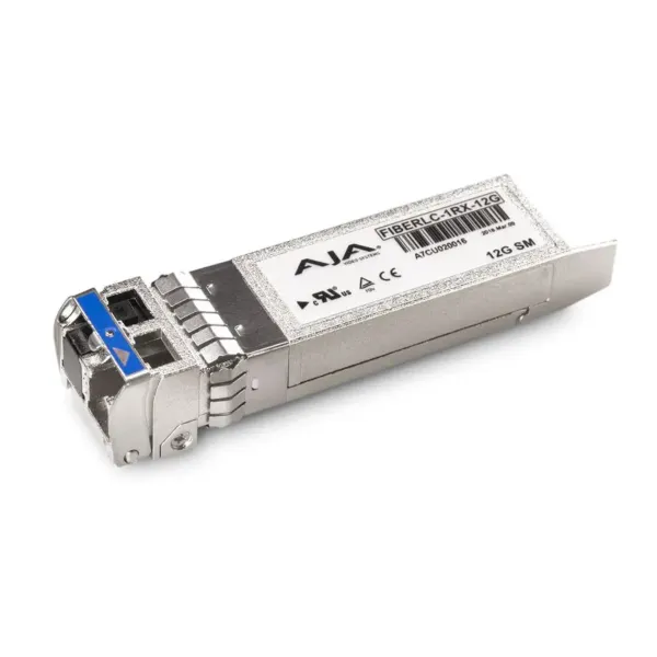 Le FiberLC-1RX-12G est un module SFP récepteur fibre optique conçu pour les convertisseurs AJA. Il permet la réception de signaux 12G-SDI sur fibre optique single mode via connecteur LC. L'architecture est basée sur un transceiver optique interchangeable pour connexions fibre dans les workflows broadcast.