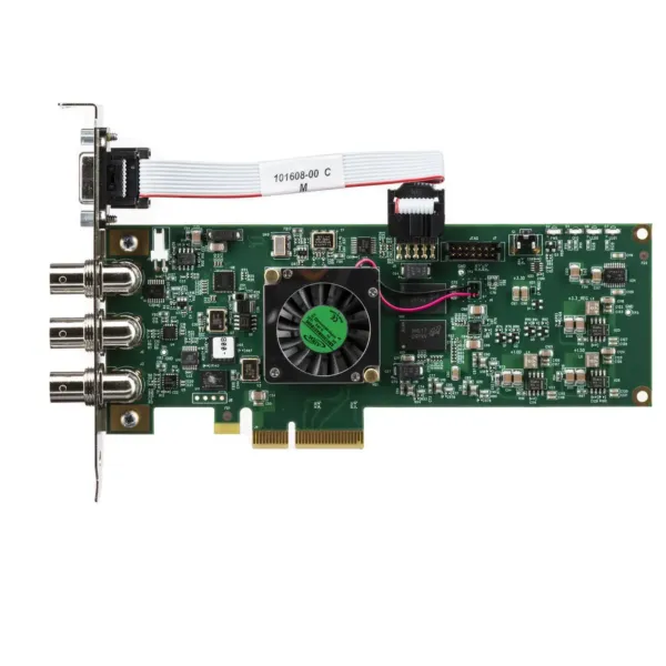 L’architecture matérielle repose sur une interface PCIe Express Gen 2.0 à deux lignes, suffisante pour le transport fiable de flux SD, HD et 2K non compressés. La connectique SDI repose sur des connecteurs BNC pleine taille, compatibles avec les infrastructures broadcast existantes. La carte prend en charge les normes SMPTE SD-SDI, HD-SDI et 3G-SDI, autorisant des résolutions jusqu’à 2048 × 1080 avec des cadences pouvant atteindre 60 images par seconde selon le format.