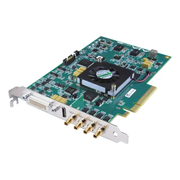 L’architecture matérielle exploite une interface PCIe Express 8 voies offrant largeur de bande suffisante pour traiter des signaux non compressés aux résolutions SD à 4K à 50/60 ips. La connectique comprend quatre interfaces 3G-SDI bidirectionnelles, chacune prenant en charge les normes SMPTE SDI jusqu’à 3G pour SD/HD/2K/4K, ainsi qu’une sortie HDMI 2.0b dédiée au monitoring ou à la restitution directe sur écrans UltraHD. Cette sortie HDMI peut être utilisée en parallèle des ports SDI, offrant une visualisation locale des flux. :contentReference[oaicite:1]{index=1}