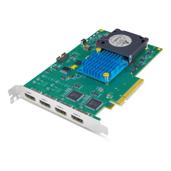 La carte dispose de quatre entrées HDMI pleine taille capables de gérer des signaux SD, HD, 2K et UltraHD. Les deux entrées HDMI 2.0 prennent en charge la capture jusqu’en 4K à 60 images par seconde, tandis que les entrées HDMI 1.4b permettent la capture simultanée de jusqu’à quatre flux HD ou 2K. Chaque entrée transporte l’audio HDMI intégré avec un support pouvant aller jusqu’à huit canaux par source.