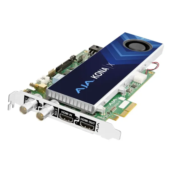 ...En complément des ports SDI, la KONA X intègre une entrée HDMI 2.0 et une sortie HDMI 2.0 pleine taille avec jusqu’à 8 canaux audio intégrés, facilitant l’interfaçage avec des dispositifs HDMI grand public ou professionnels. Cette combinaison SDI et HDMI permet de gérer des workflows mixtes SDI/HDMI sans nécessiter de convertisseurs externes, simplifiant l’intégration dans des environnements hybrides.
