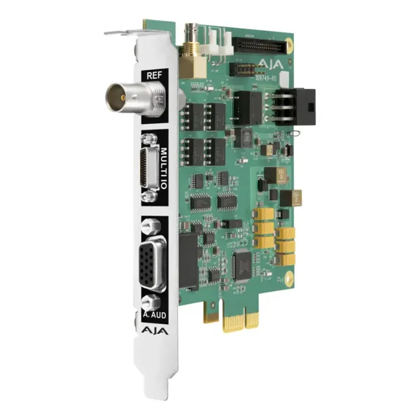 La gestion audio repose sur deux systèmes audio indépendants, chacun capable de traiter jusqu’à 16 canaux audio. La carte peut être associée à une carte breakout optionnelle AJA KONA XPAND permettant l’ajout d’audio numérique AES/EBU, d’audio analogique discret et d’autres fonctions d’E/S spécialisées. Des connecteurs dédiés sont également présents pour le LTC, le contrôle série RS-422 et les entrées/sorties multifonctions.