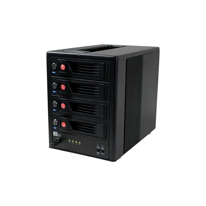 Châssis tour avec chiffrement 256 bit, clé de chiffrement physique, quatre baies SATA Freetray configuré en JBOD.