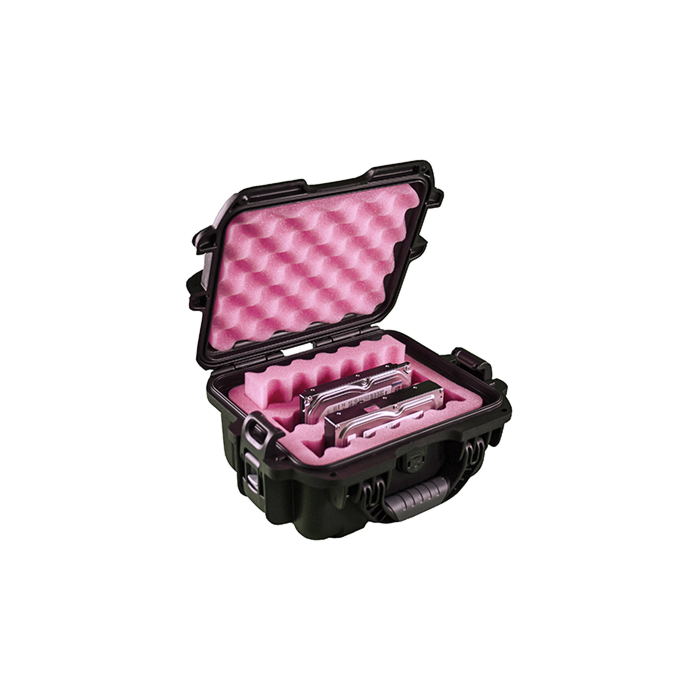 La valise de transport Turtle a été conçue avec des doubles parois et des fentes individuelles en mousse antistatic pour la protection contre les dommages causés aux disques durs (impact, isolation contre les températures extrêmes, protection contre l'eau). Elle permet de contenir jusqu'à 1 à 3 disques durs 3.5" montés sur tiroirs Hot Swap. Son système de double loquets en acier inoxydable évite l'ouverture accidentelle de la valise et il est possible d'y attacher 2 cadenas. Ces valises sont garanties à vie par Turtle.